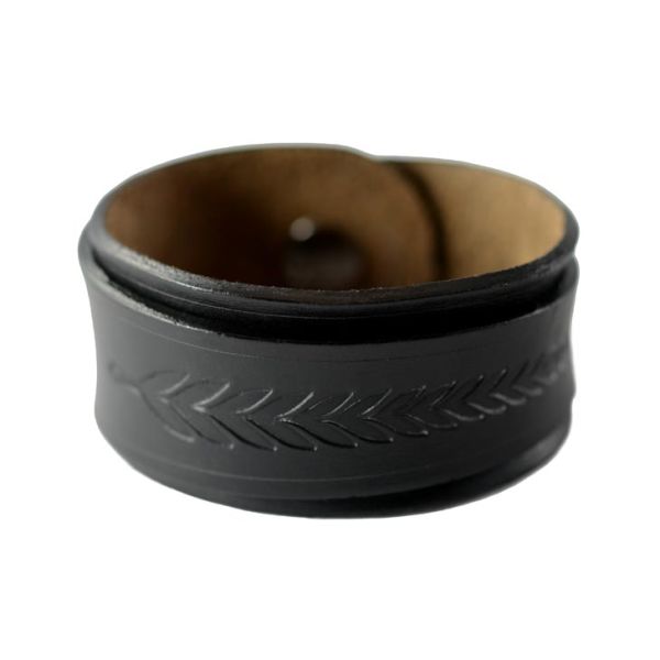 This Ivy leather bracelet is handcrafted from soft, oil tanned leather.It is inspired from the organic look of nature. The corners flare out and are comfortable for the wrist. It is designed to wrap around itself until it snaps together. The Ivy bracelet is hand burnished and edge painted. Handmade in the USA, from American leather