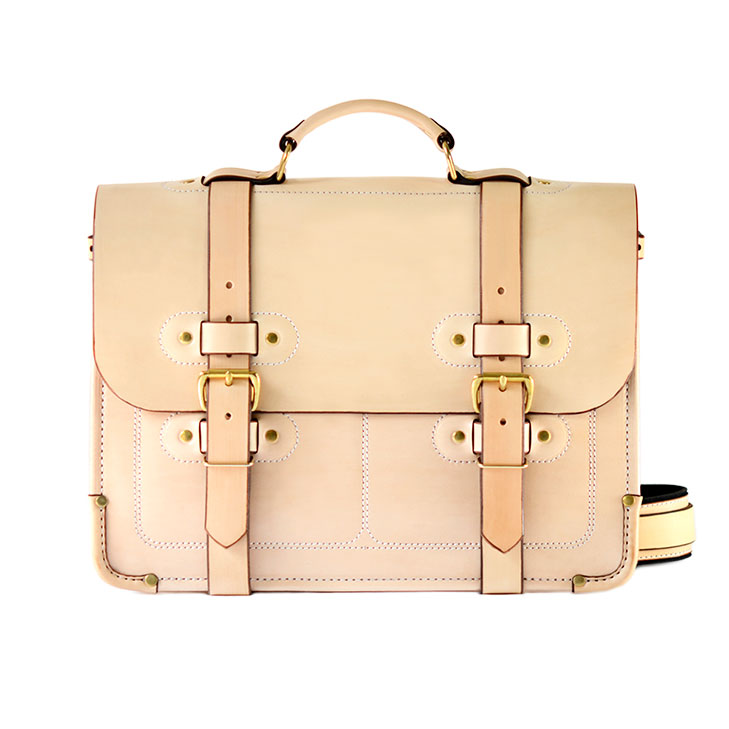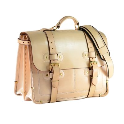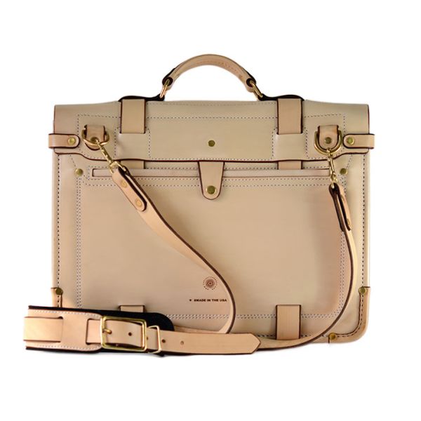 PRODUCT FEATURES: • Full-grain Saddle leather • Main body has two large compartments, a laptop pocket, and four smaller pockets • Wide, heavy-duty adjustable shoulder strap • Expandable body from 5” up to 8” • Two heavy-duty buckle closures • Large rear exterior easy access pocket • Comes with detachable key fob