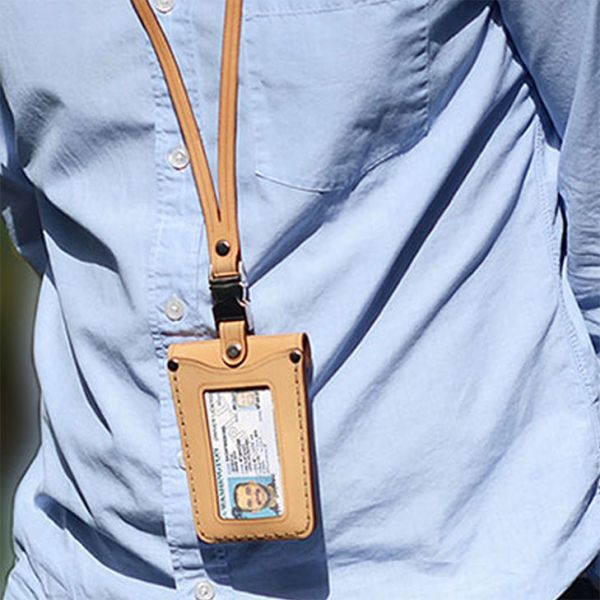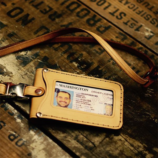 This functional and work friendly ID holder is made from high quality vegetable tanned saddle leather that is hand glazed and edge burnished. The quick release trigger hook releases your ID for quick and easy access. The hidden pocket on the back, secured by a flap closure, allows you to hold cards and cash in a convenient location. The ID holder is small enough to comfortably fit into your pocket or be worn around your neck. The leather strap is about 32 inches long and has an adjustable length, allowing it to accommodate and change to your needs. The ID holder uses only industrial strength hardware. Handmade in the USA, from American leather.