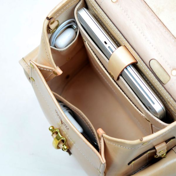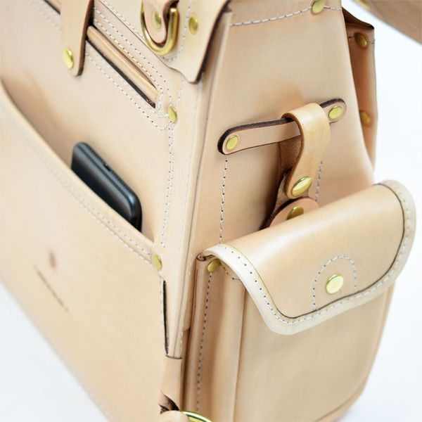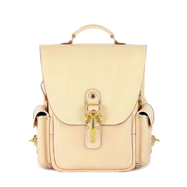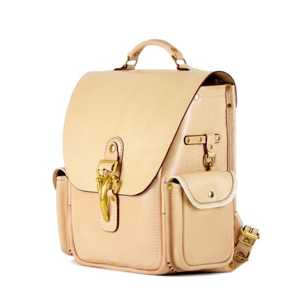 This highly functional, practical, and durable Heirloom Backpack is an extension of the Heirloom family of products. It can change between a backpack or a crossbody bag. It has 12 different pockets, allowing you to carry all of your daily necessities in a smart and ergonomically compact design. The leather we use in the Heirloom Backpack is made from full-grain vegetable-tanned saddle leather. The backpack is stitched with a heavy-duty polyester thread- and all of the hardware we use on it is solid cast brass. All the stress points are riveted with industrial-grade solid brass rivets. On the front flap of the backpack, there is a heavy-duty brass opening and closing latch lock that allows ease of access, while also adding to the classic Heirloom style look. The back of the bag has two pockets, one quick-access pocket, and a snap-closure pocket. These convenient pockets are great for traveling and allow you to store your items either securely, or in a place that is convenient. The comfortable and padded backpack straps are attached to the top and are highly adjustable. The inside of the bag is roomy and efficient. The inside is broken down into a main compartment, a laptop compartment- with a smaller pocket built on top, and two large front pockets. There are also two small side pockets for glasses and pens on the interior. Each exterior side of the Heirloom Backpack has a quick access pocket and a molded snap closure pocket. There is also a removable ID tag and key chain. The Heirloom Backpack is great for traveling, work, and everyday use. Handmade in the USA, from American leather. MADE TO ORDER (up to three weeks time)