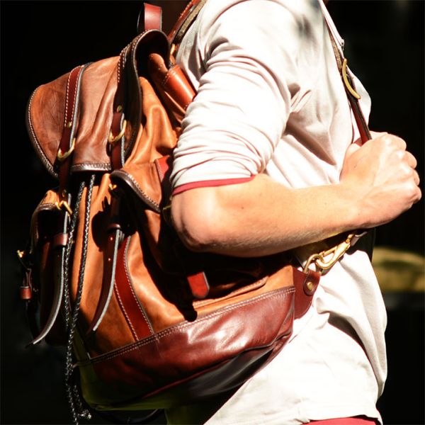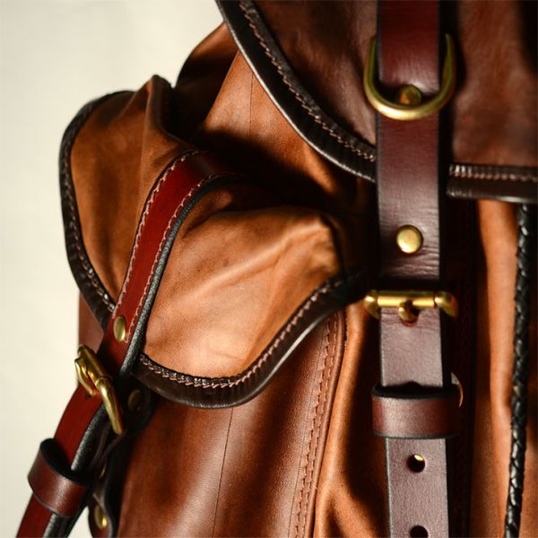 This midsized Vintage Leather backpack is our take on the everyday backpack instilled with a hint of the rugged rucksack aesthetic. The bag is made from soft, malleable leather that is sewn with a heavy-duty thread. The backpack is riveted and equipped with industrial-grade brass hardware. The main body of the bag is elegant and resilient. The entire bottom of the bag is reinforced with a heavier-weight leather that adds character and durability to it. There are two convenient side pockets that are secured with brass buckle closures. The back of the Vintage Leather backpack has two wide, high-quality saddle leather adjustable shoulder straps that are padded with 100 percent organic felt. The main body of the backpack features two saddle leather adjustable strap closures with brass buckles. The main flap is designed with ease of access in mind. It can conveniently be pulled open revealing the unique leather cord cinch top closure. The bag’s inside is entirely lined with an eco-friendly and water-repellent sunbrella fabric. The inside is composed of one main compartment and one smaller soft leather pocket for holding small accessories. The main compartment is large enough to hold a laptop comfortably, or several changes of clothes. The unique design of the bag allows it to conform its shape around whatever you place inside it. The Vintage Leather backpack is a great fit for any trip. It is easy to carry, store and incredibly diverse. From school, to work, to even the great outdoors- this unisex Vintage Leather backpack is designed for maximum comfort and resiliency. Handmade in the USA from American leather. MADE TO ORDER (up to two weeks)