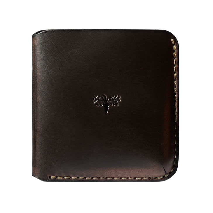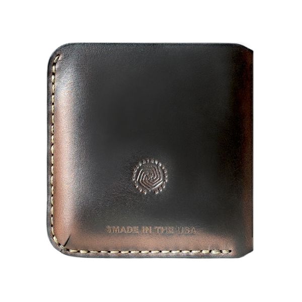 This slim, sleek profile Bi-fold wallet is designed to hold all of your daily necessities in a compact and streamlined design. The Square Bi-Fold wallet has four vertically placed card slots. The Square Bi-Fold wallet has a unique design that when upon opening, allows the bill holder compartment to spread wider apart. The unique convex bottom corners lets you easily slip in cash. Upon closing, the bill holder tightens around the top opening- thereby sealing your bills in a secure compartment. The Square Bi-Fold wallet is handmade from full grain oil tanned leather. It is handstitched with a heavy duty waxed thread and edge burnished. Handmade in the USA, from American leather.