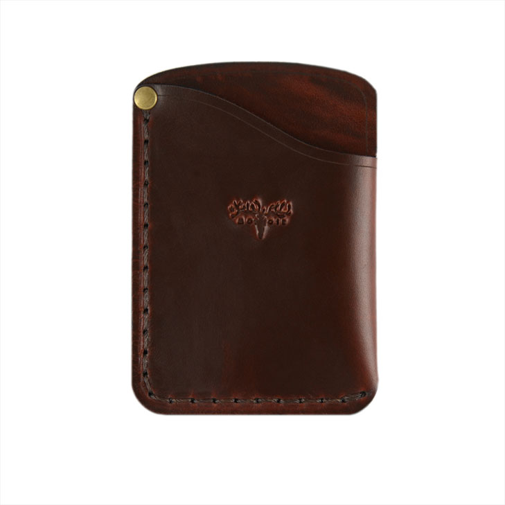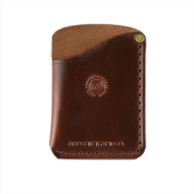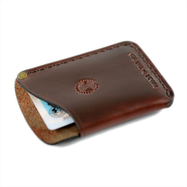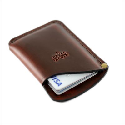 This card holder wallet is perfect for holding many different types of cards because of its two pocket design. It has enough room for up to 5 cards and cash. The small, elegant design is hand sewn from waxed thread and edge burnished. The card holder wallet is perfect for everyday use because of its slim design.