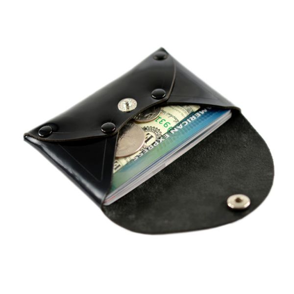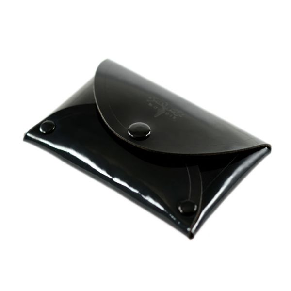 This envelope wallet incorporates a stitch-less minimalist design that is chic and functional. It is made from a single piece of thin glossy patent leather. The envelope wallet can fit up to 5 cards and has space for cash and change while being our lightest and smallest product. The leather of the envelope wallet is thin, firm and yet the interior of the wallet is spacious. The envelope wallet is ideal for compact traveling. Handmade in the USA, from American leather