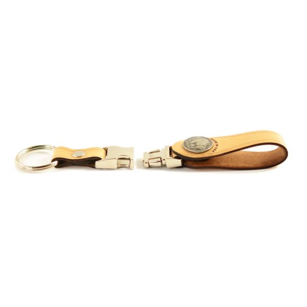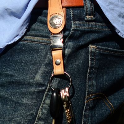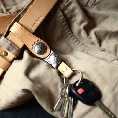 This functional leather key fob is made from high quality vegetable tanned saddle leather that is hand glazed and edge burnished. The detachable trigger hook releases your keys for quick and easy access. The key fob holds multiple keys from its metal ring. The product can easily attach and detach from a belt or D ring, while also being small enough to fit into your pocket or hand comfortably. The key fob uses only industrial strength hardware. Handmade in the USA, from American leather.