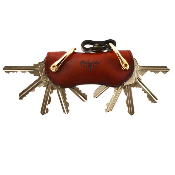 PRODUCT FEATURES: • Can fit up to 10 household keys • Compact, single snap, stitch-less design • Made from a single piece of thick saddle leather • Comfortable for hand and pocket use