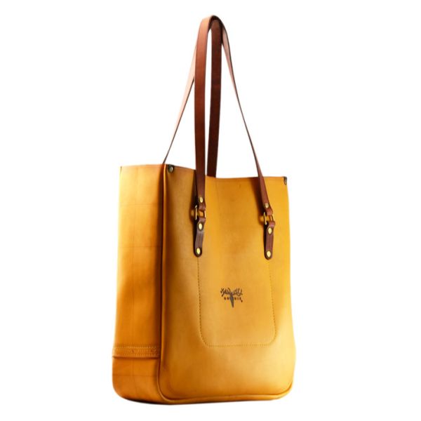 This leather tote bag is handcrafted from a high quality oil tanned leather that ages softly over time. The tote is designed to be highly practical and minimal. It is assembled with industrial grade hardware to ensure its longevity. The body is double stitched for strength with heavy duty nylon thread. The interior has a large laptop pocket and a small pocket to hold miscellaneous goods. This minimal leather tote bag is designed to last a lifetime. Handmade in the USA, from American leather.