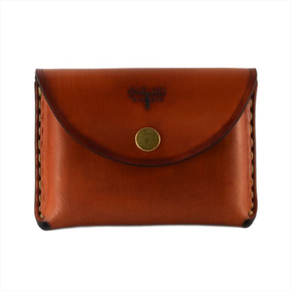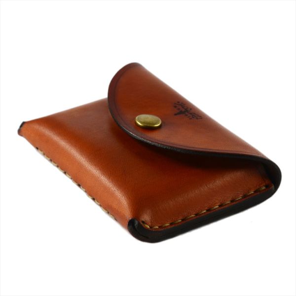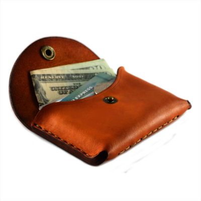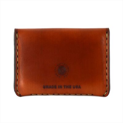 This slim Pocket wallet is made from high quality saddle leather and has three interior compartments. You can easily slip in business cards, an ID and credit cards. The front concaved body shape gives enough room for loose change and cash. It has a snap closure flap. The wallet is hand sewn with a waxed thread. It’s elegant curved bottom is designed to slip easily into tight jeans pockets, while being comfortable for the hand. Handmade in the USA, from American leather