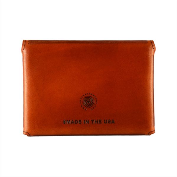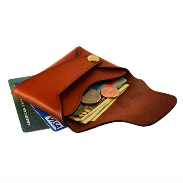 This stitch-less Zen wallet is perfect for holding credit cards, ID, and cash. It has enough room for up to 7 cards and cash. The whole card holder is made from single piece of high quality saddle leather. The unique rivet design is hand dyed, glazed, and edge burnished. The wallet is perfect for everyday use. Handmade in the USA, from American leather.